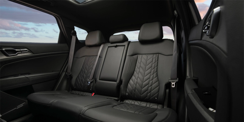 Inside, the 2025 Kia Sportage Hybrid offers a spacious, modern cabin designed for comfort and convenience. An 8-inch touchscreen comes standard, with the EX trim upgrading to a 12.3-inch display, offering wireless Apple CarPlay®, Android Auto™, and Bluetooth connectivity. The interior also offers ample headroom and legroom, premium materials including available leather upholstery, and soft-touch surfaces, ensuring comfort for all passengers. The cargo area is spacious, with foldable rear seats to accommodate larger items, while the optional panoramic sunroof adds to the airy feel inside the cabin. This interior is crafted to be a versatile choice for daily use or weekend getaways.